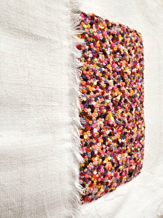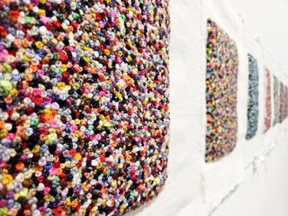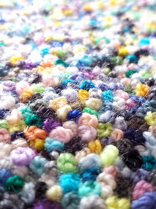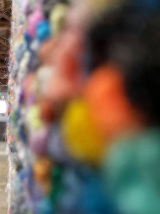 For this work, I used a yarn available in 100 different shades, i.e. as many shades as there are years in a century. I assigned each shade a number between 00 and 99 as follows: 00-09: whites, 10-19: purples, 20-29: browns, 30-39: reds, 40-49: oranges, 50-59: yellows, 60-69: greens, 70-79: turquoises, 80-89: blues, 90-99: blacks.