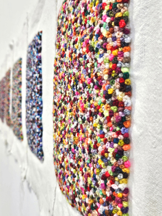 The number of stitches per year, and thus per colour, is fixed in advance and remains constant throughout. The number of different shades per colour array, on the other hand, depends on the length of the respective life. Therefore, the longer the life, the greater the colour diversity and the larger the stitched area.