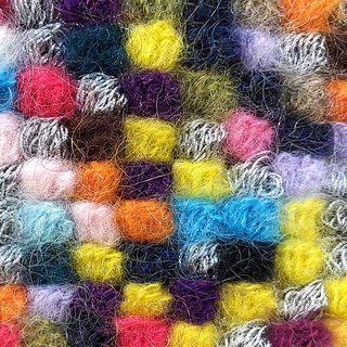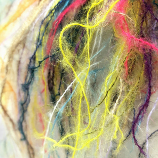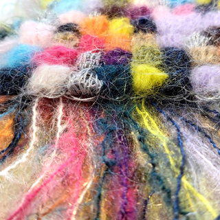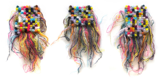 The loose yarn ends are an accidental by-product of the crochet technique used. They form an uncontrolled counterpart to the controlled surface and become an equivalent component of the work.