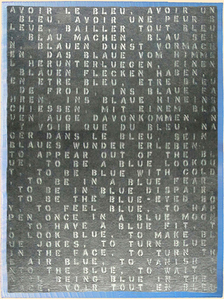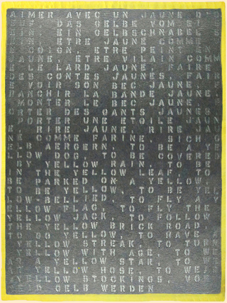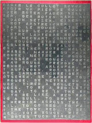 Each work contains idioms in English, French and German in which the specific colour of the embroidery occurs. Within each work, the idioms are arranged alphabetically, all 3 languages combined.